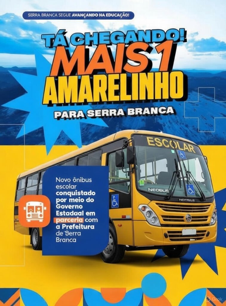 O município de Serra Branca dará mais um passo importante no fortalecimento da educação pública com a chegada do primeiro de quatro novos ônibus escolares conquistados para sua rede ensino. O diferencial que marca esse avanço é histórico: pela primeira vez, os estudantes passam a contar com ônibus escolares equipados com ar-condicionado, garantindo mais conforto, segurança e acessibilidade no transporte diário.