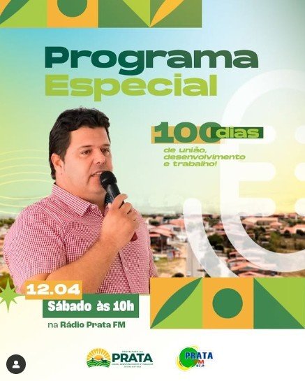 Na manhã deste sábado, às 10h, o prefeito de Prata, Genivaldo Tembório, participa de uma entrevista especial na Rádio Prata FM, 87,9 MHz. O chefe do Executivo municipal falará um balanço dos 100 primeiros dias à frente da Prefeitura, destacando conquistas, desafios enfrentados e os próximos passos do seu governo.