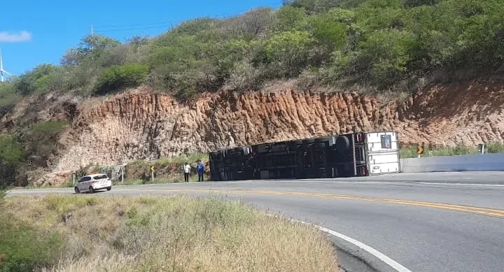 Uma carreta tombou, na manhã desta terça-feira (8), no município de Santa Luzia, localizado no Sertão da Paraíba. O tombamento ocorreu por volta das 9h20 na BR-230, aproximadamente no KM 278, no local conhecido como “Curva do S” na Serra de Santa Luzia.