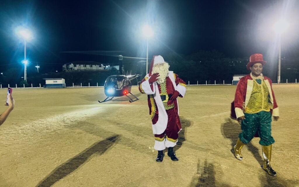No final da tarde, a gestão municipal anunciou uma surpresa especial, que se concretizou durante a noite e entrou para a história do Cariri. Pela primeira vez na região, a emblemática figura do Papai Noel, em uma versão ainda mais pomposa, chegou de helicóptero ao Estádio Municipal de Coxixola, arrancando aplausos, emoção e encantamento do público presente, especialmente das crianças.