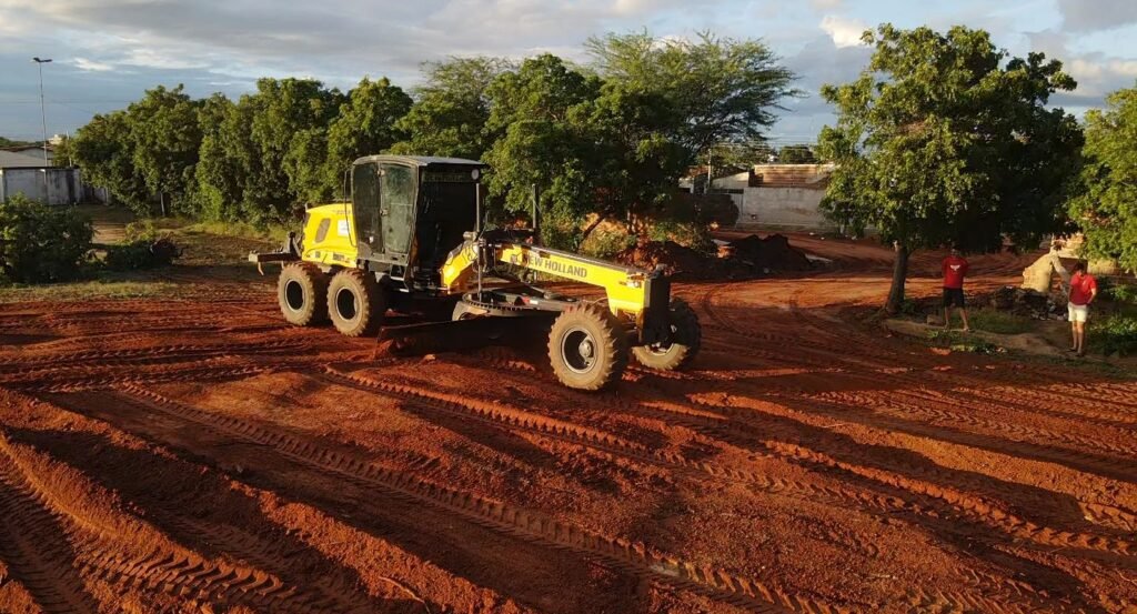 Os serviços começaram pela etapa de terraplenagem, após a apresentação da jazida que viabilizou os estudos de solo necessários para o andamento do projeto. No local, estiveram presentes a equipe técnica da SUPLAN, incluindo Willian Melo, Luciano Sabino (representante da empresa executora), o engenheiro José Yago e profissionais de topografia.