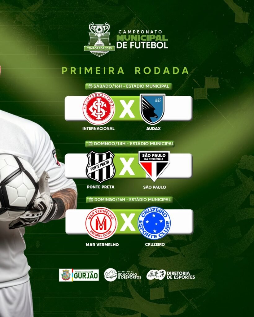 O campeonato é uma realização da Secretaria de Educação, Diretoria de Esportes da Prefeitura de Gurjão.