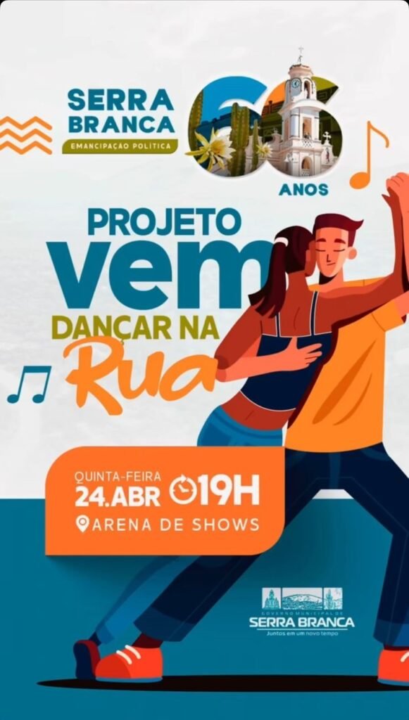 A Prefeitura de Serra Branca deu início, na noite desta quinta-feira (24), ao projeto “Vem Dançar na Rua”, uma iniciativa que alia lazer, música e promoção da saúde em um ambiente descontraído e aberto à população. O evento marcou o início das comemorações pelos 66 anos de emancipação política da cidade, conhecida carinhosamente como a Rainha do Cariri.