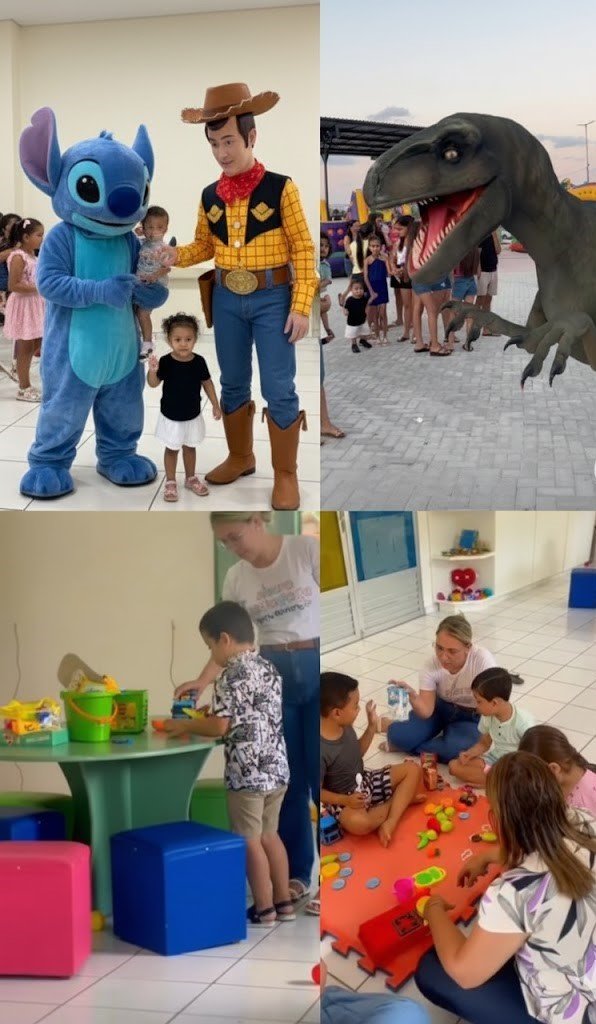 - Parque de infláveis e mascotes gigantes, que foram os mais encantadores para as crianças!